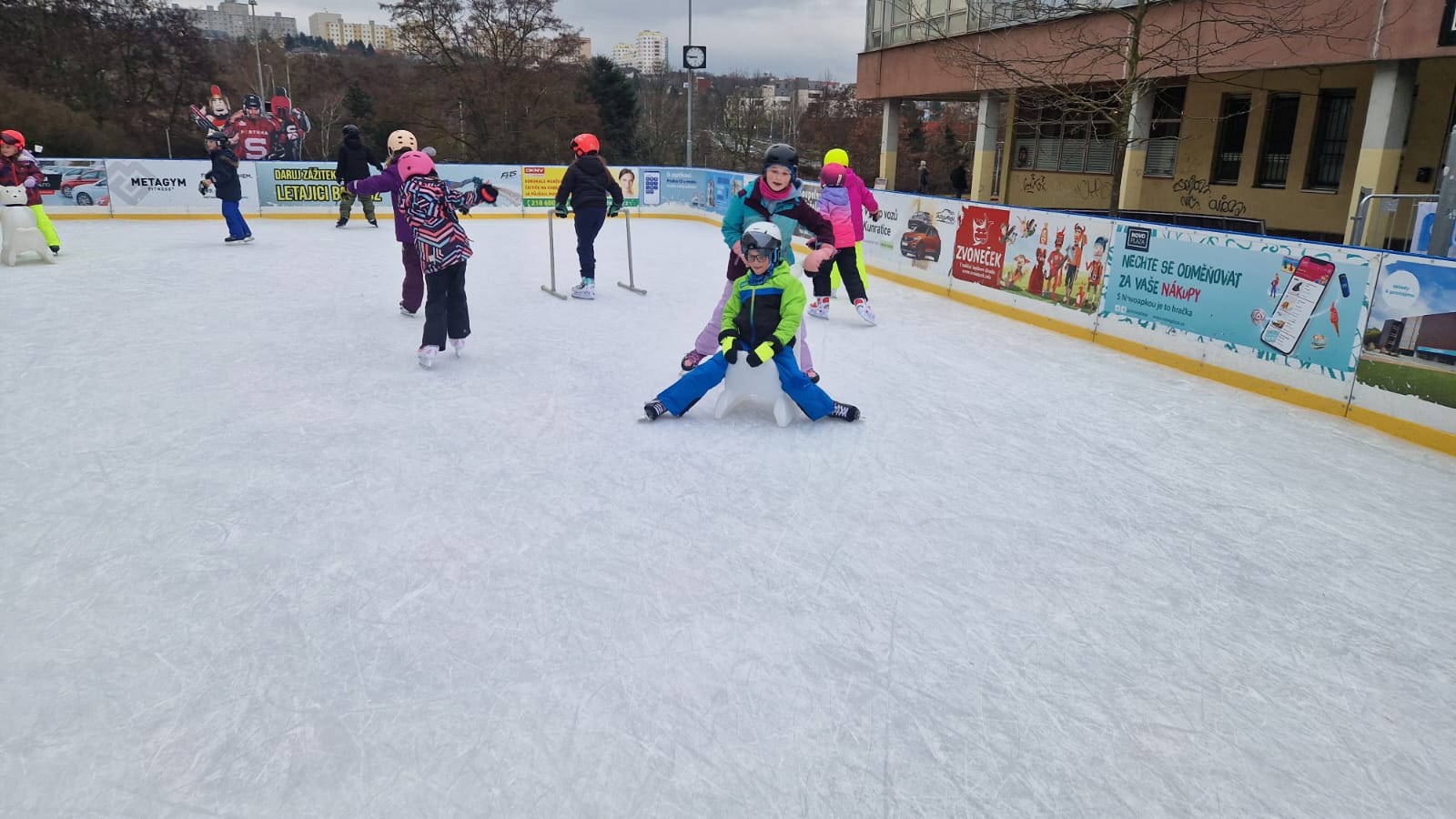 Během zimy se jednotlivé třídy postupně vystřídaly na kluzišti na Sofijském náměstí v Modřanech. Třídy měly svůj vyhrazený čas, kdy si mohly užít bruslení se svými spolužáky.