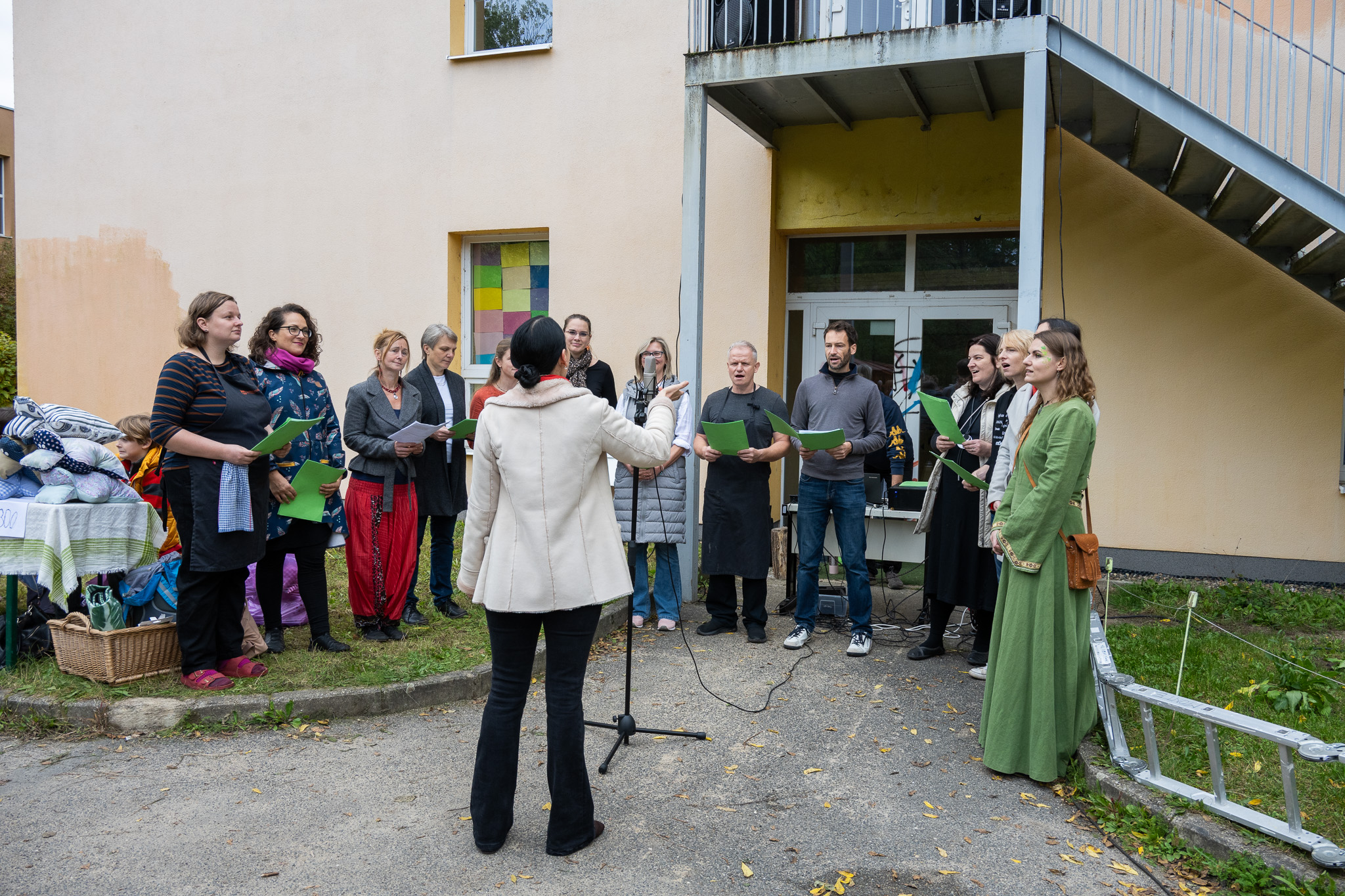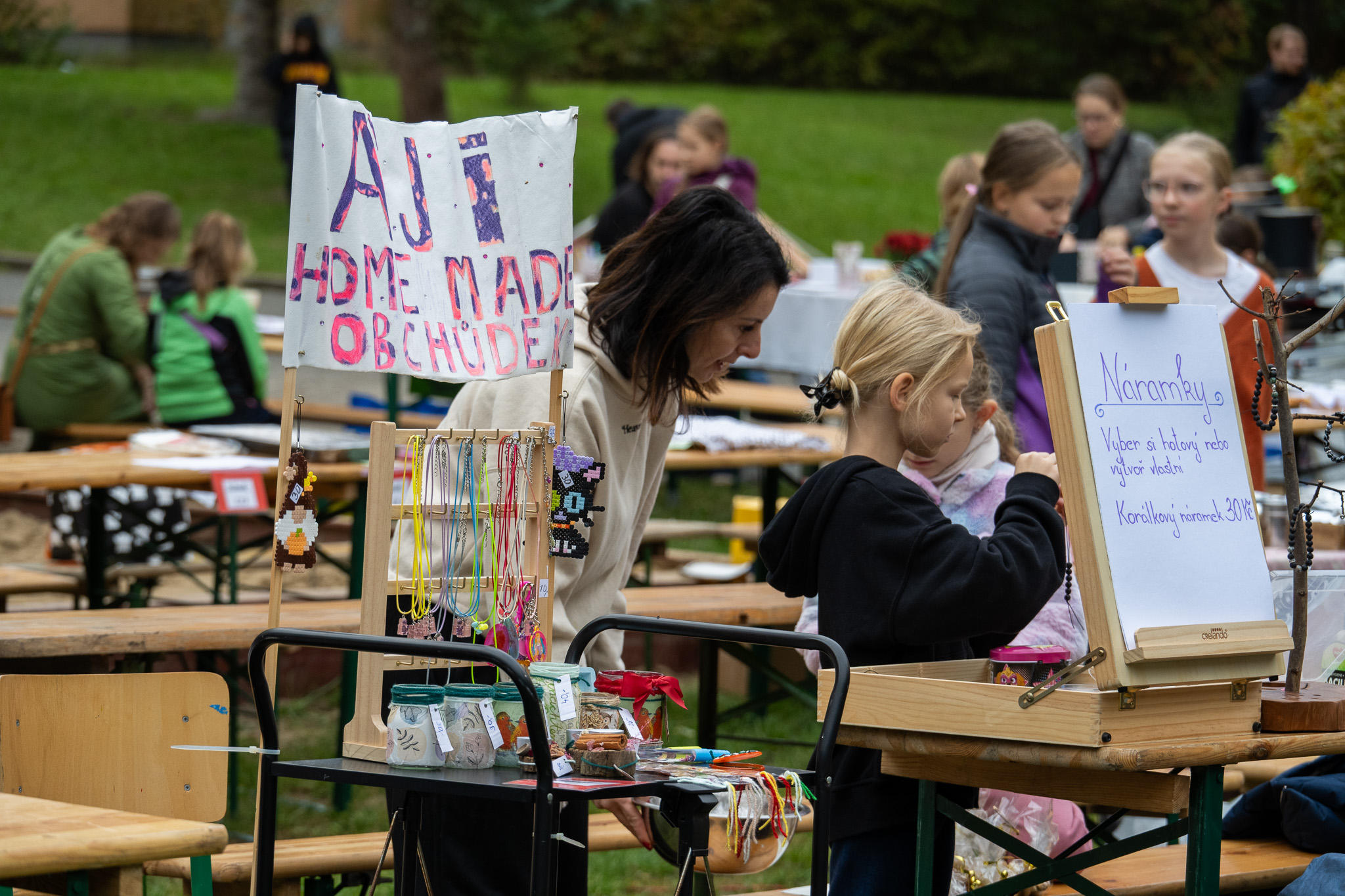 Kromě kulturních zážitků měli návštěvníci možnost zúčastnit se prohlídky naší přírodní zahrady, kde obdivovali podzimní proměny a ekologické prvky. Máme radost, že nás na jarmarku poctil návštěvou i pan radní pro školství Petr Prchal.