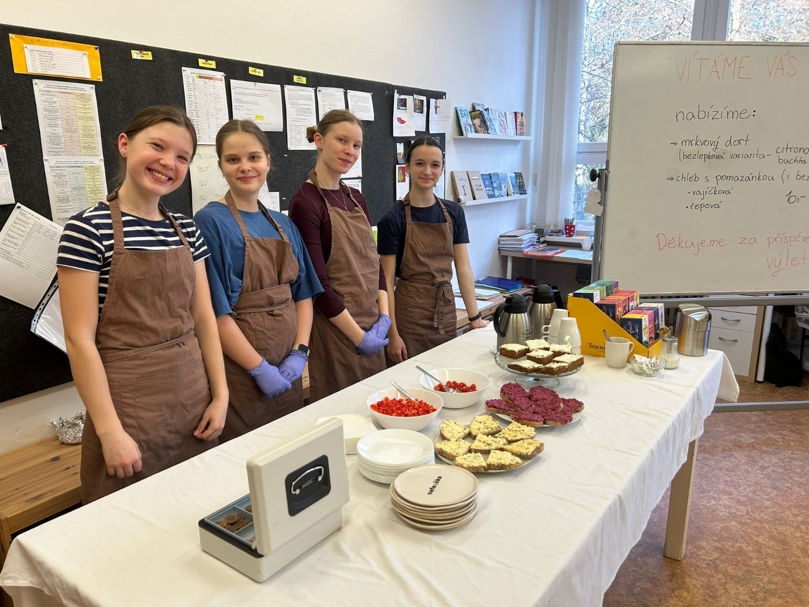 Na rodiče mezitím čekalo občerstvení, které s velkým nasazením připravili žáci 9. tříd ve své školní kavárně Cafeečko. Deváťáci tak přispěli k příjemné atmosféře a pomohli vytvořit prostředí, ve kterém se všichni cítili vítáni.